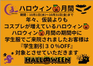 【ハロウィン🎃月間】10月1日〜31日